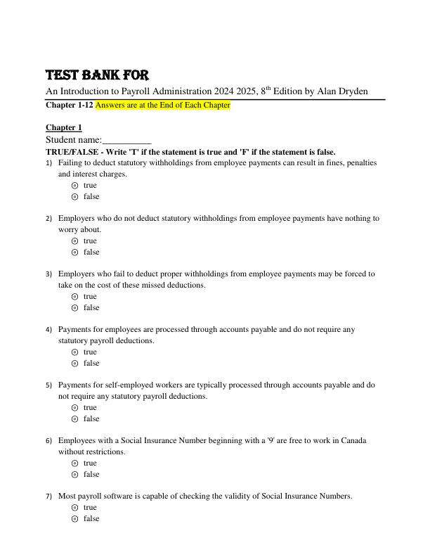 Test Bank For Medical Office Procedures 10th Edition By Nenna L. Bayes Chapter 1-10.pdf